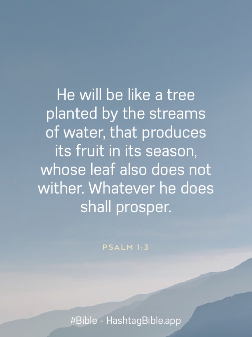 Belief, Faith, FamilyMorning Praise June 18, 2021 Angela Ireland hashtagbible.app/bible/verse/eyJyZWYiOiJQc2FsbSAxOjMiLCJ0ZXh0IjoiSGUgd2lsbCBiZSBsaWtlIGEgdHJlZSBwbGFudGVkIGJ5IHRoZSBzdHJlYW1zIG9mIHdhdGVyLCB0aGF0IHByb2R1Y2VzIGl0cyBmcnVpdCBpbiBpdHMgc2Vhc29uLCB3aG9zZSBsZWFmIGFsc28gZG9lcyBub3Qgd2l0aGVyLiBXaGF0ZXZlciBoZSBkb2VzIHNoYWxsIHByb3NwZXIuIiwidGhlbWUiOiJCbHVlIE1vdW50YWlucyJ9 Share this: Click to share on LinkedIn (Opens in new window) LinkedIn Click to share on Telegram (Opens in new window) Telegram Click to share on Pinterest (Opens in new window) Pinterest Click to share on Facebook (Opens in new window) Facebook Like Loading... Published by Angela Ireland View all posts by Angela Ireland
