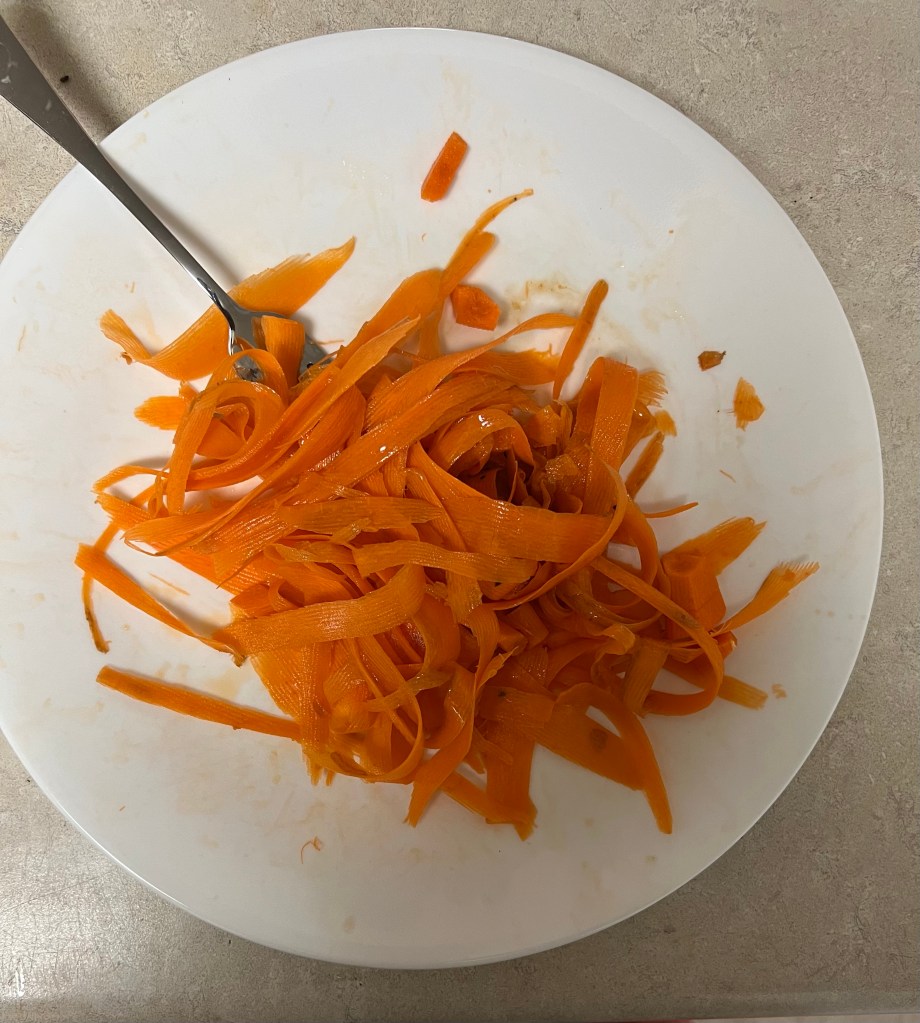 By now, you’re probably wondering how to consume the carrots. Start with one organic carrot, shredded with a splash of vinegar, a splash of coconut oil or avocado oil (fat helps with absorption), sea salt to taste and enjoy. You’ll want to consume on empty stomach 30-60 minutes before your dinner or in my case lunch.